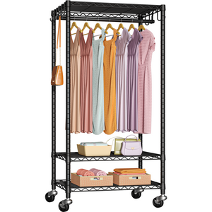 E7 52.3-72" Extendable Triple Column Garment Rack (Black), 838LBS Load & 6-Tier Wire Shelves