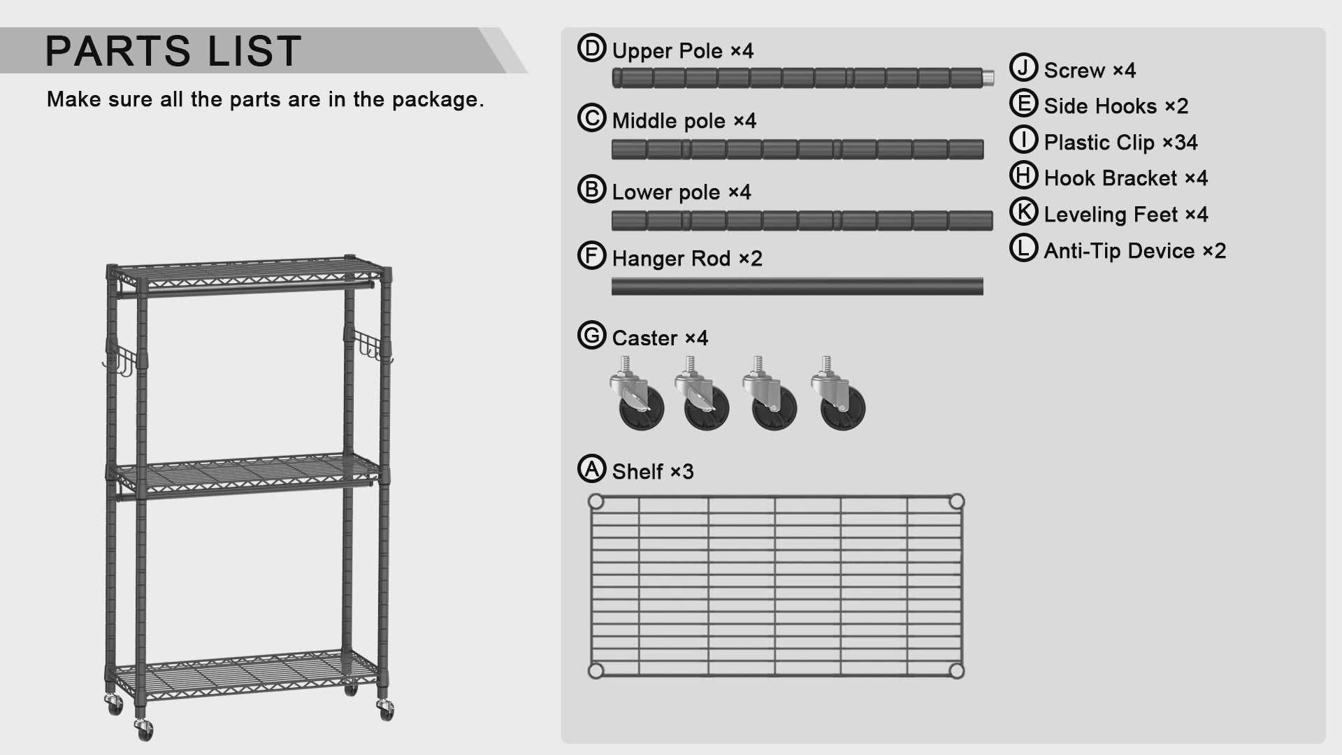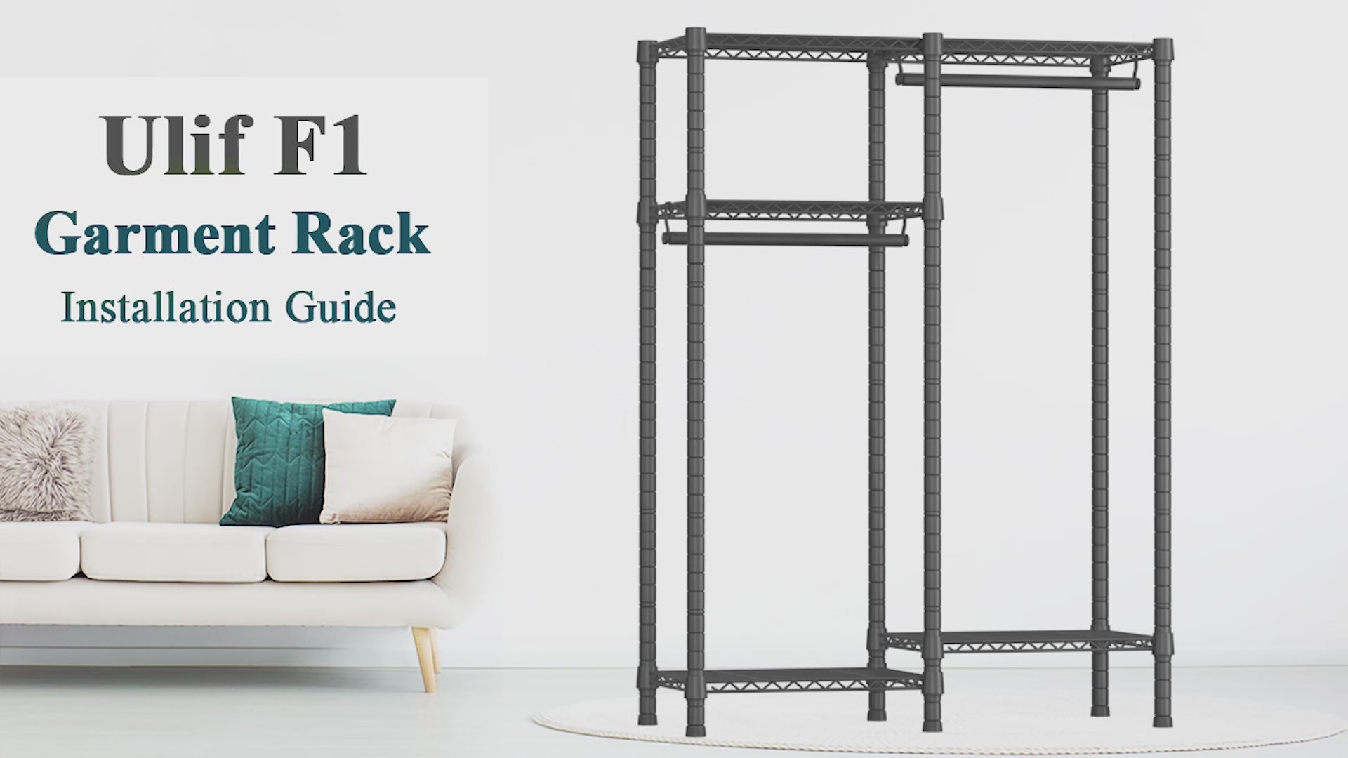 E11 73.2-97.6" Extendable Triple Column Garment Rack (Black), 1034LBS Load & Wall-Mounted/Free-Standing