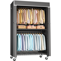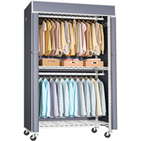 | Metal Rack and Fabric Cover Overall Dimension: The covered clothes rack whole size is 46"W x 18.5"D x 80.7"H, which combines with 3 wire shelves and 2 hanger rods for loading 524 lbs Dustproof Cover: The FUTASSI clothes rack with a cover can avoid dust when using the garment rack. The dustproof cover has zippers for perfect sealing Multifunctional Portable Closets: 4 rolling wheels allow you to use it flexibly. The movable clothing rack has 2 lockable wheels that can avoid moving around freely Long-lasting & Sturdy: Combined with metal and powder-coated to protect the closet rack from humidity and rust, long-lasting wire clothes shelves are built to be sturdy and stable Easy to Assemble: No tools are required for easy assembly. The dustproof zippered cover is simple to tie on the garment rack |